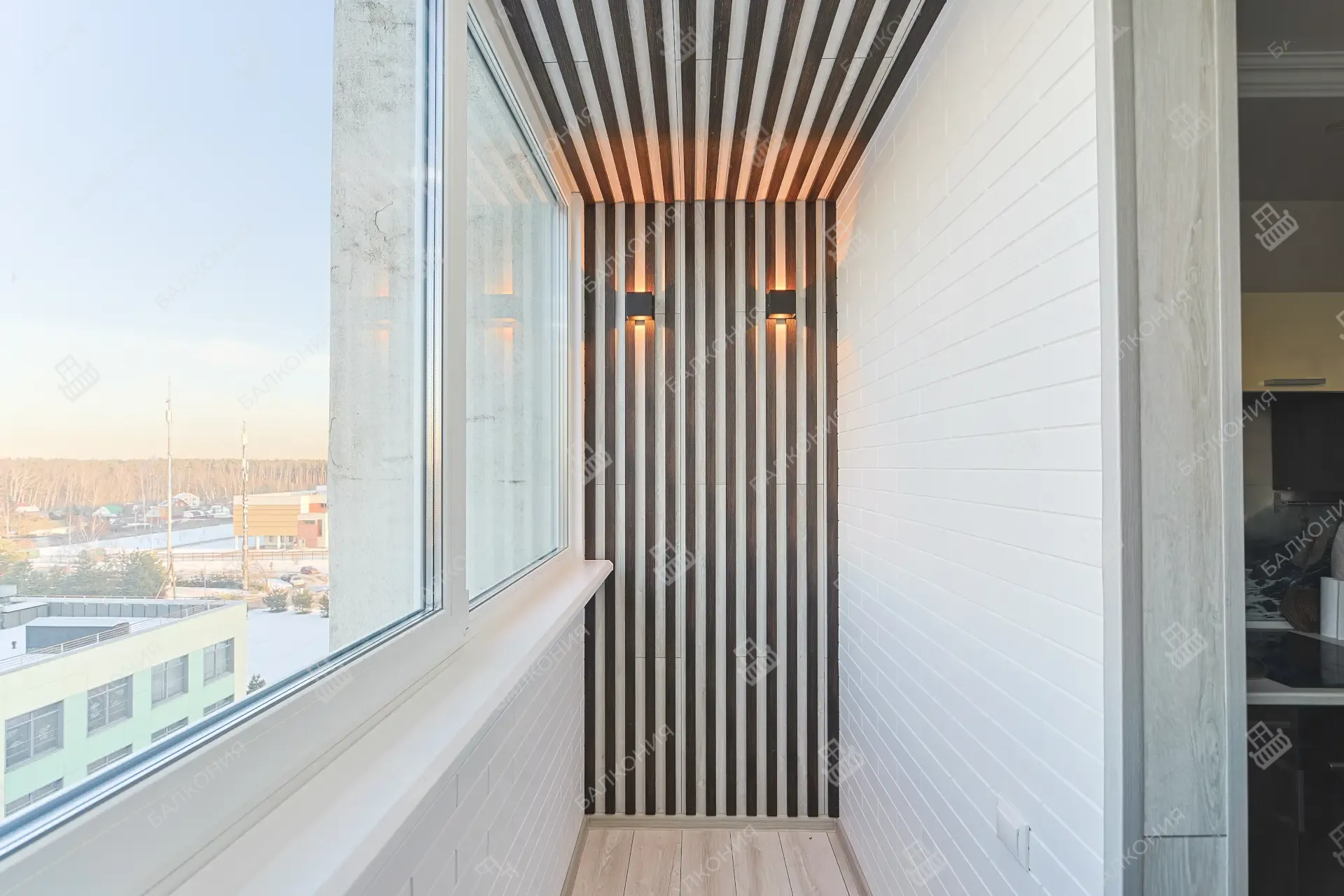 Специалисты «Балконии» монтируют панели на подготовленный каркас, аккуратно закрывают стыки и при необходимости совмещают обшивку с утеплением балкона.
