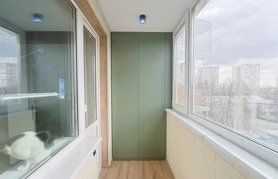 Отделка ламинатом Г-образного балкона с утеплением